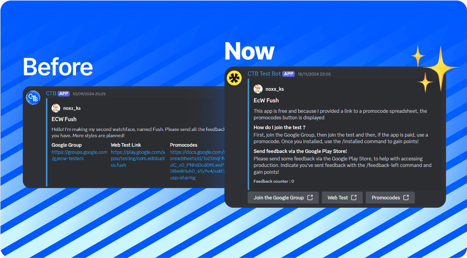 Say goodbye to plain links! Joining a test is now more intuitive and visually appealing with the introduction of buttons in your app's embed.
